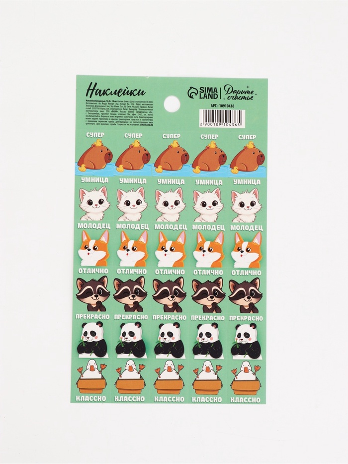 Наклейки детские оценки «Молодец», 10.5×18 см