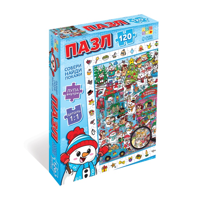 Пазл «Найди и покажи. Новогодний переполох», 120 деталей, лупа