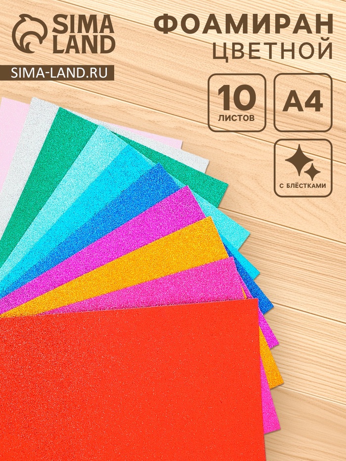 Фоамиран цветной 2 мм, набор 10 шт,, формат А4, с клеевой основой