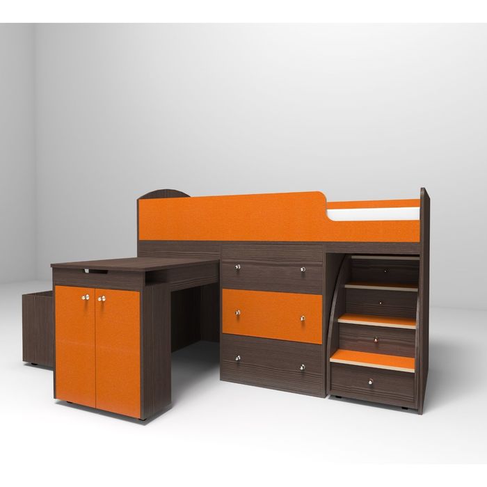 Кровать-чердак Ярофф Малыш, 800x1800, Бодего/Оранжевый