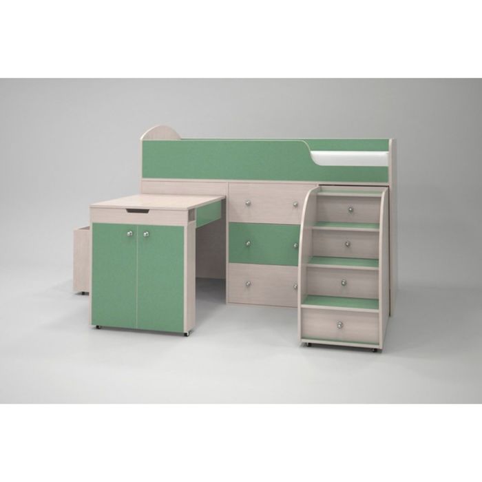 Кровать-чердак Ярофф Малыш, 800x1800, Дуб молочный/Зеленый
