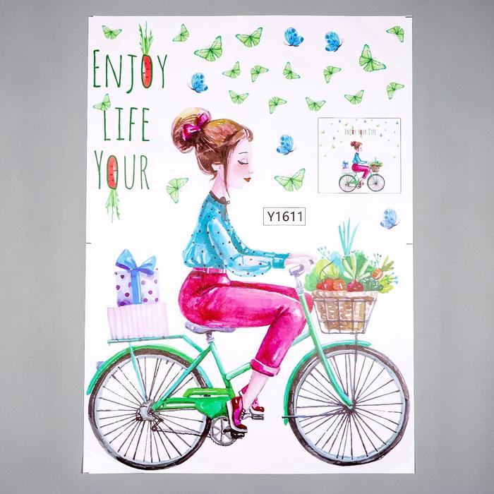 Наклейка пластик интерьерная цветная "Девушка на велосипеде" 50х70 см