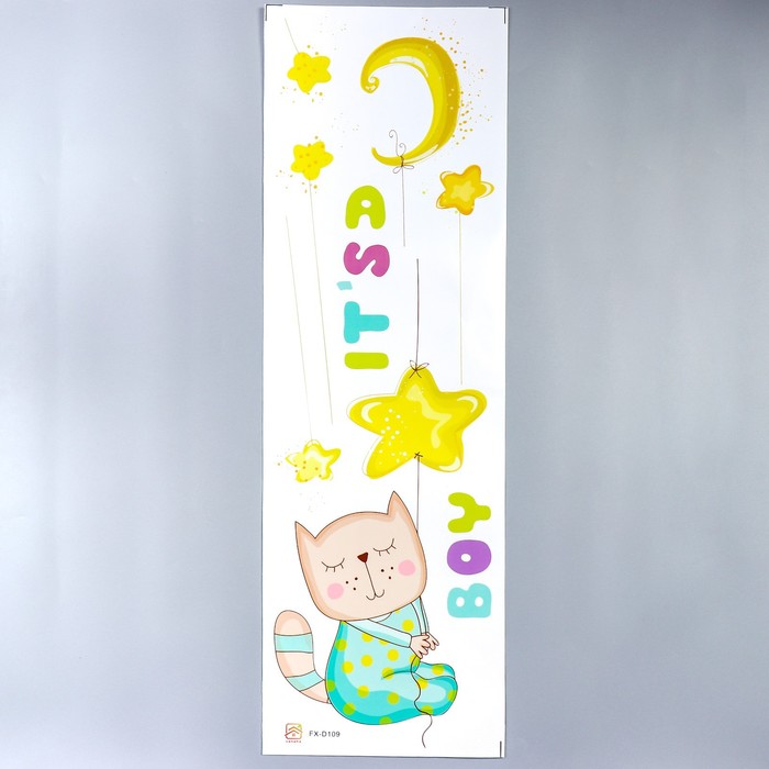 Наклейка пластик интерьерная цветная "Котик в пижамке" 30х90 см