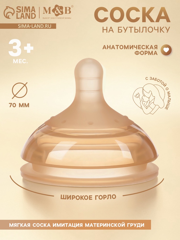 Соска для бутылочки, +0мес., M&B, ШГ Ø70 мм