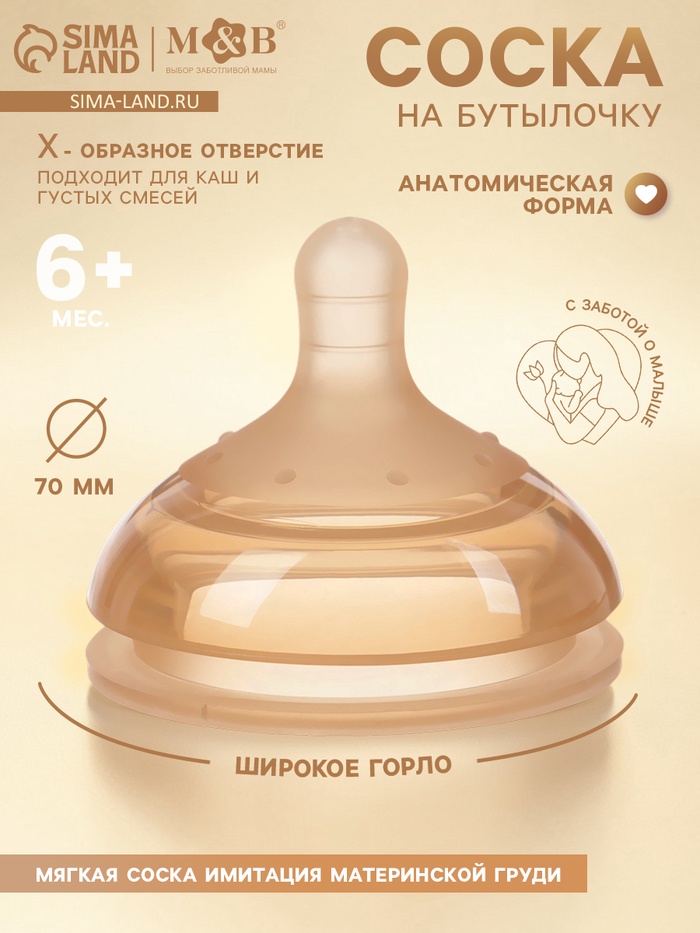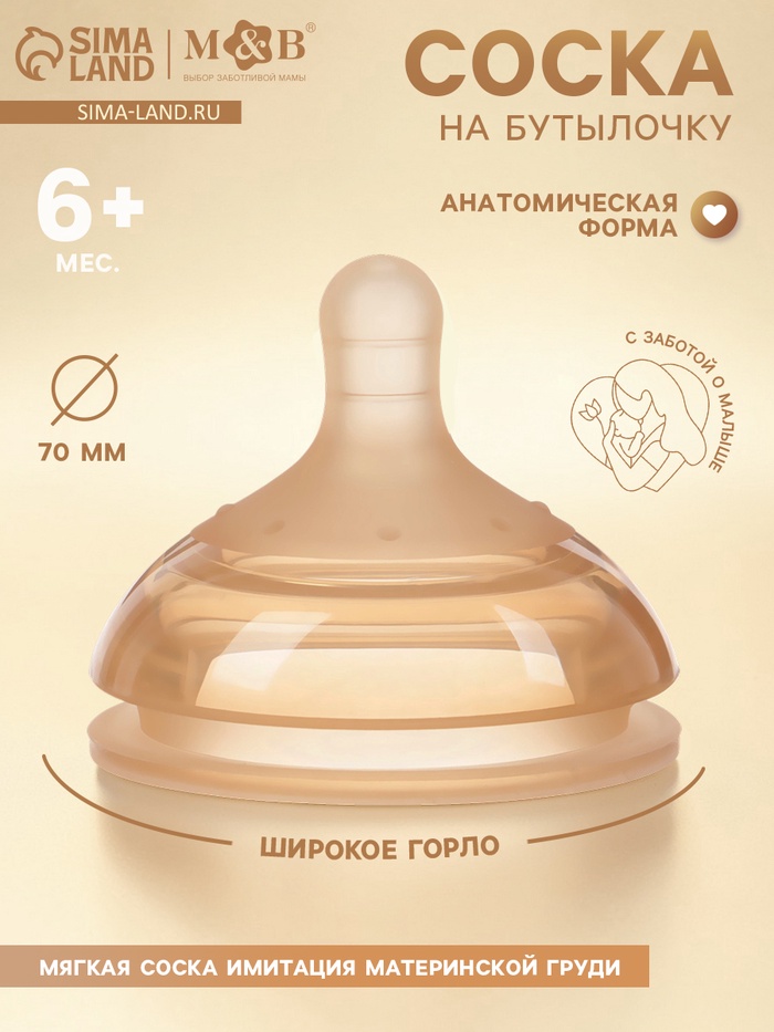 Соска для бутылочки, +6мес., M&B, ШГ Ø70 мм