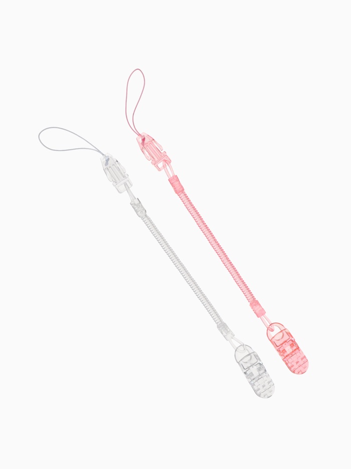 Держатель для соски - пустышки, пружинка, 2 шт., прозрачный, розовый, Крошка Я