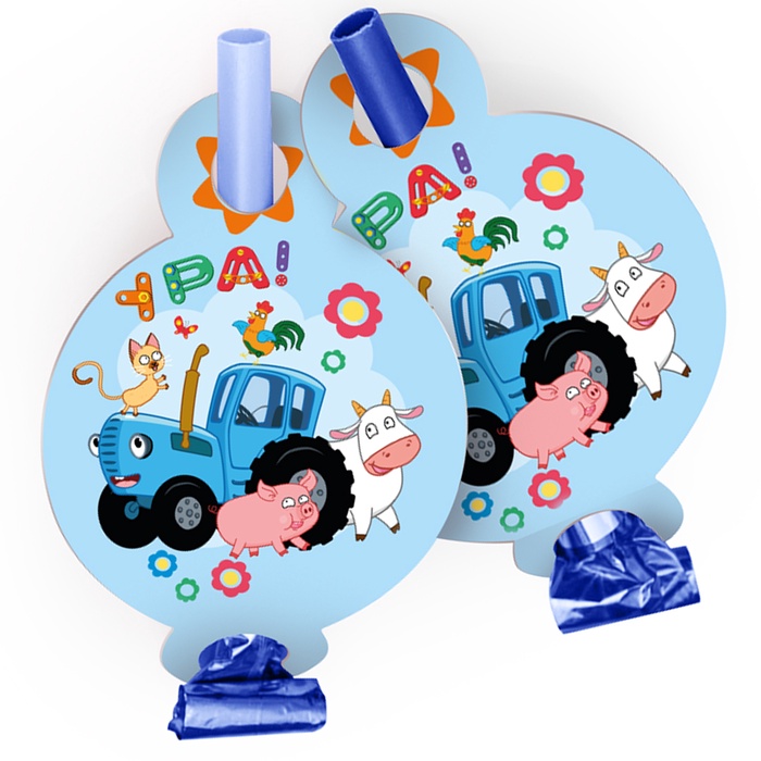 Карнавальные язычки гудки "Синий трактор". Веселое путешествие" 11 см, 6 шт.