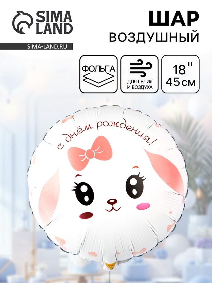 Воздушный шар фольгированный 18" «Зайка с розовым бантом»