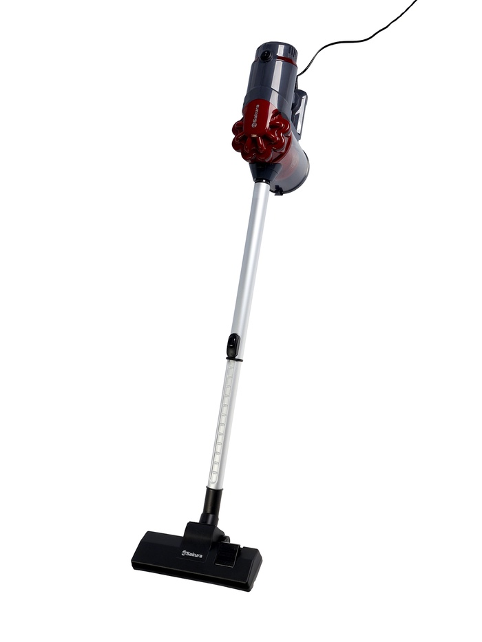 Пылесос Sakura SA-8322R, вертикальный, 800 Вт, 1л, 79дБ, 4м, 4 насадки, красно-серый