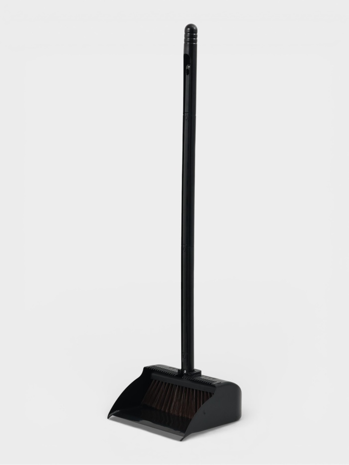Щётка для пола, совок 26х25 см, щётка 25 см, пластиковая секционная ручка 98 см, цвет черный 1096