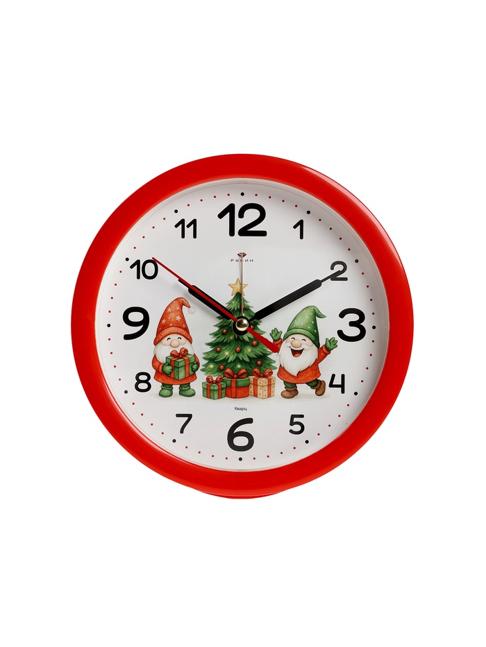 Будильник «Весёлые гномы», плавный ход, d=15 см, красный