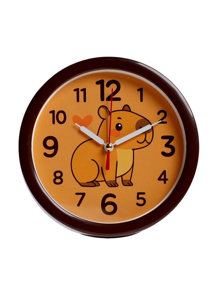 Будильник «Капибара», плавный ход, d=15 см, корпус коричневый