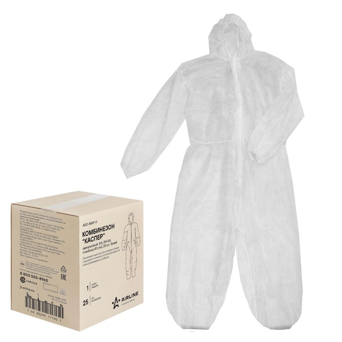 Комбинезон одноразовый Airline «Каспер», 4XL 54-56, спанбонд 40г/м2, белый