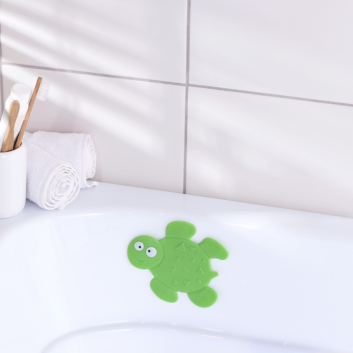 Мини-коврик для ванны Доляна «Черепашка», 11×13,5 см, цвет зелёный