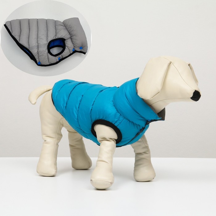 Куртка для собак двухсторонняя с воротником, ДС 36, ОШ 36, ОГ 52, голубая/серая