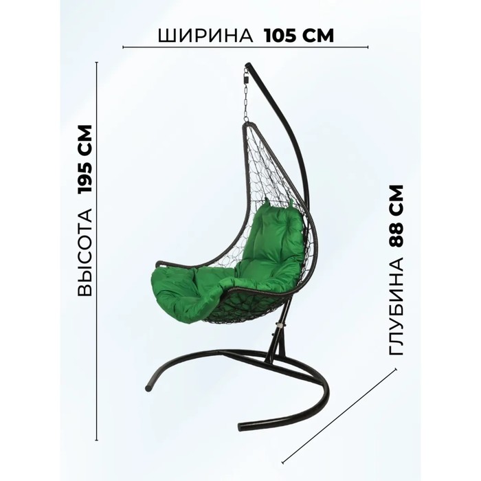 Подвесное кресло - кокон Gemini, 135×70×195 см, металлическое, коричневое, с зелёной подушкой
