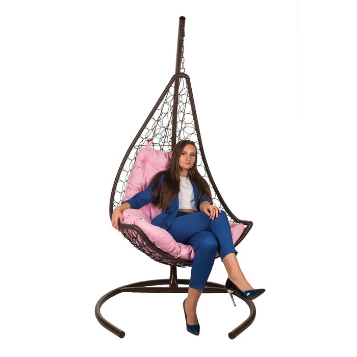 Подвесное кресло - кокон Easy, с искусственным ротангом, бежевая подушка, со стойкой, коричневое