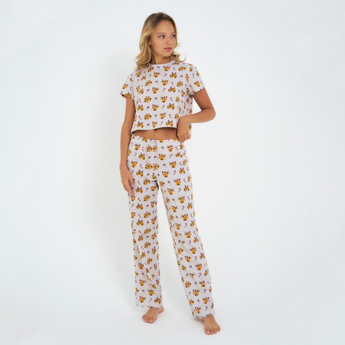 Пижама женская (футболка/брюки) "Лисёнок с бенгальским огнём", цвет белый/зелёный, размер 50