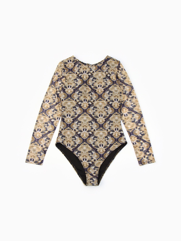 Купальник слитный женский SPF MINAKU, стрейтч-сетка, размер 42 (S), принт золотой