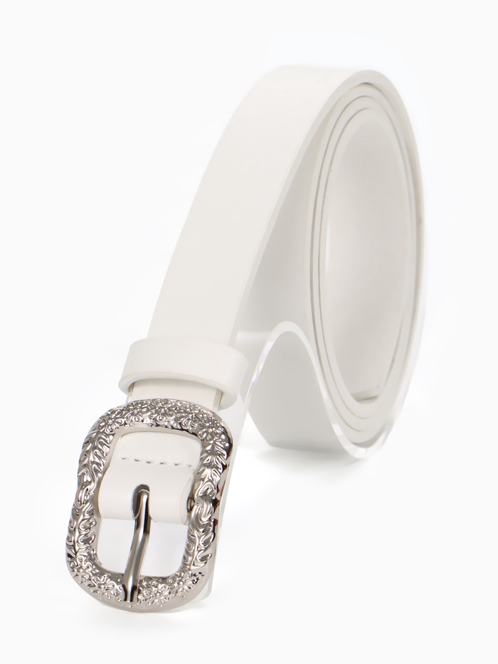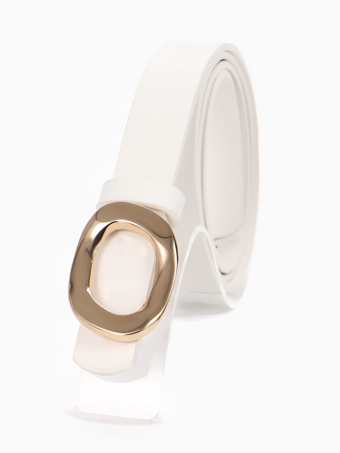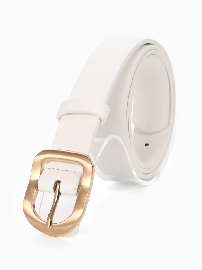 Ремень женский, металлическая пряжка, белый