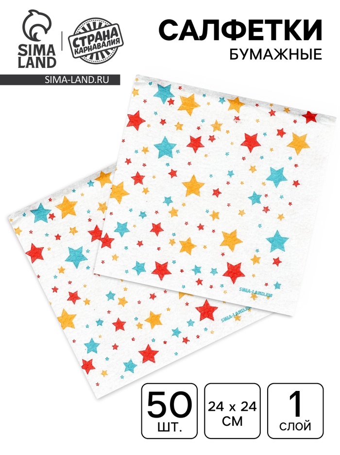 Салфетки бумажные однослойные «Звезды», 24×24 см, 50 шт.