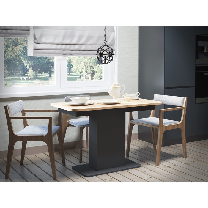 Стол обеденный раскладной СО-3, 1200(1500)х650х756, антрацит/дуб крафт золотой