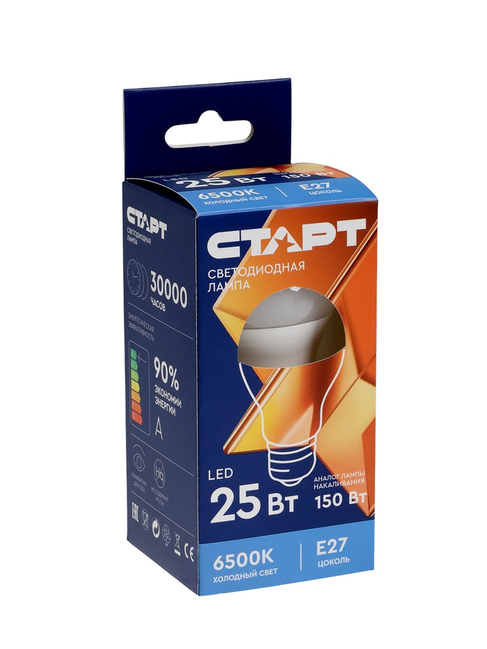 Лампа светодиодная СТАРТ, 25 Вт, Е27, А60, 6500К, 2000 Лм, свечение холодное белое
