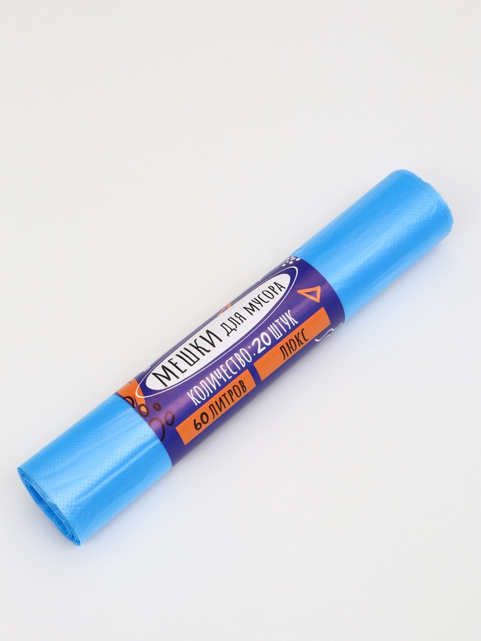 Мешки для мусора 60 л, ПНД, 20 мкм, 20 шт. в рулоне, синие
