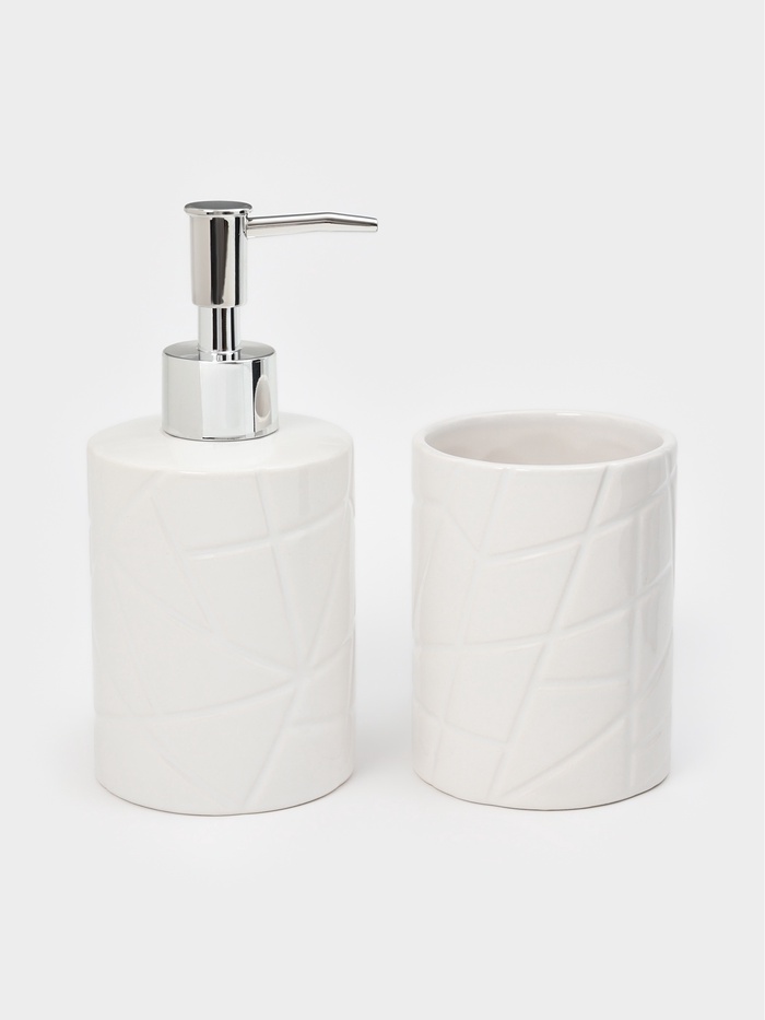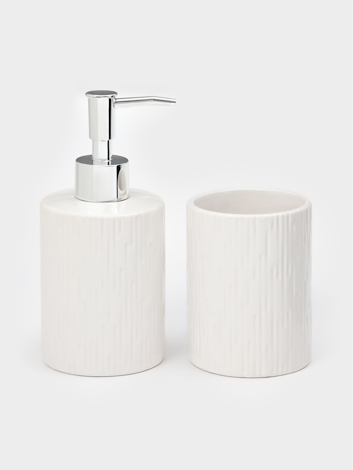Набор для ванной "Rain", 2 предмета (дозатор для мыла, стакан), цвет белый