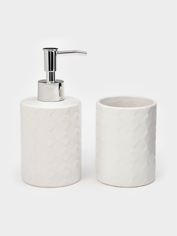Набор для ванной "Плетение", 2 предмета (дозатор для мыла, стакан), цвет белый
