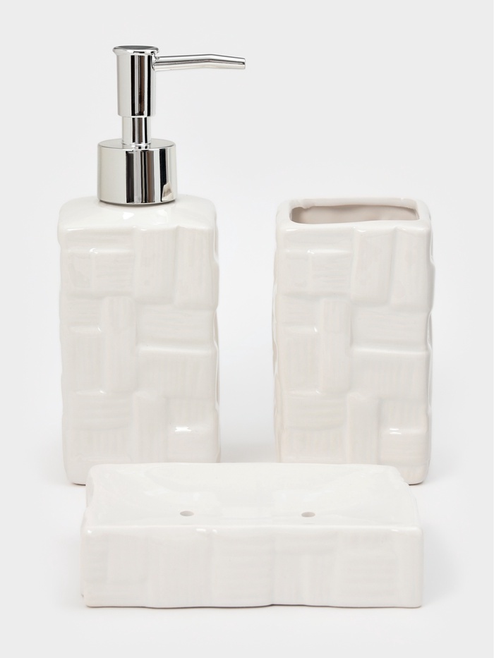Набор для ванной "Плетение" 3 предмета (дозатор, стакан, мыльница), цвет белый