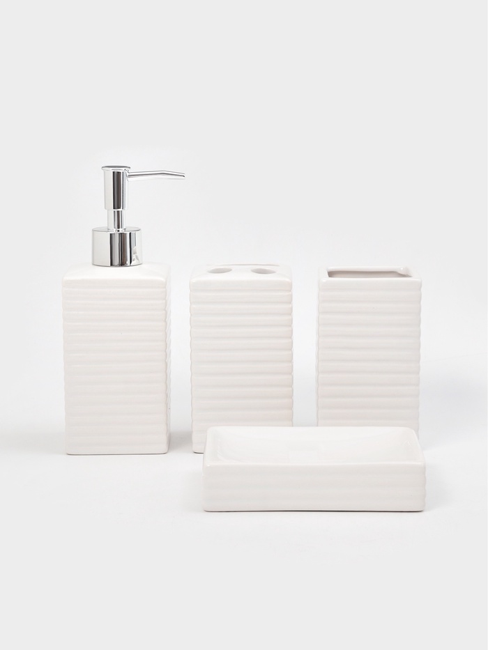Набор аксессуаров для ванной «Грани», 4 предмета, мыльница, дозатор для мыла, 2 стакана, белый
