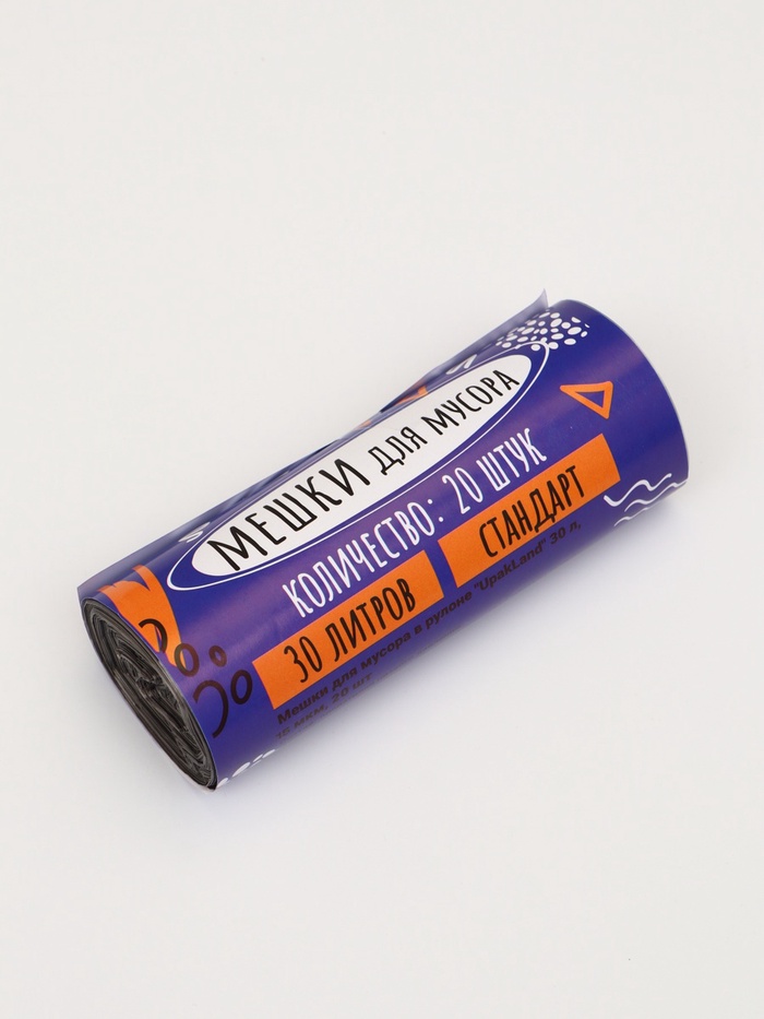 Мешки для мусора 30 л, ПНД, 15 мкм, 20 шт. в рулоне, чёрные