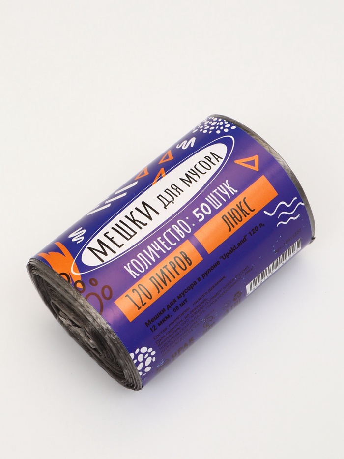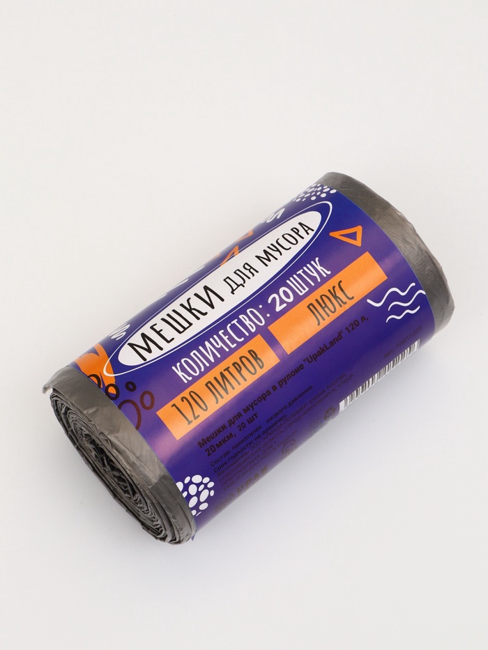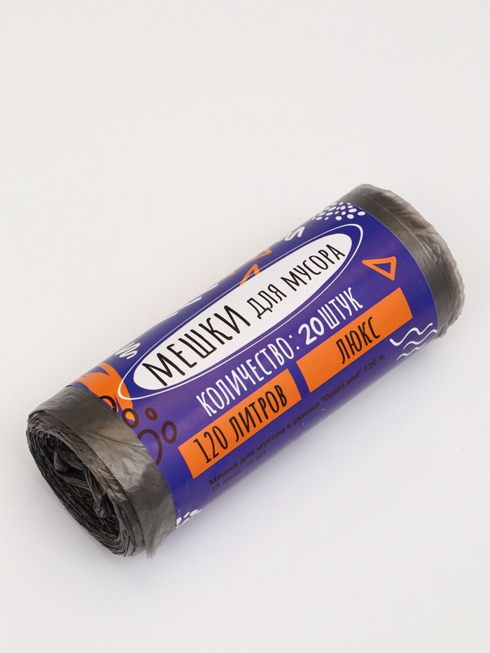 Мешки для мусора 120 л ПНД, 10 мкм, 20 шт. в рулоне, чёрные