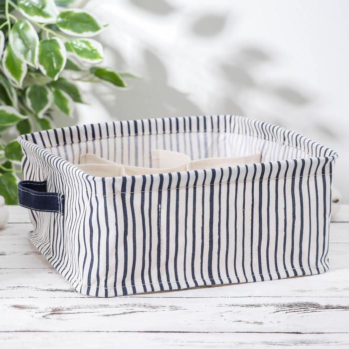 Корзина для хранения с ручками «Полосатик», 9 ячеек, 28×28×11 см, цвет белый с синим