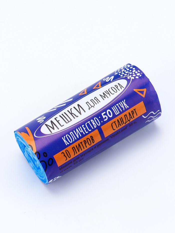 Мешки для мусора 30 л, ПНД, 5 мкм, 30 шт. в рулоне, синие
