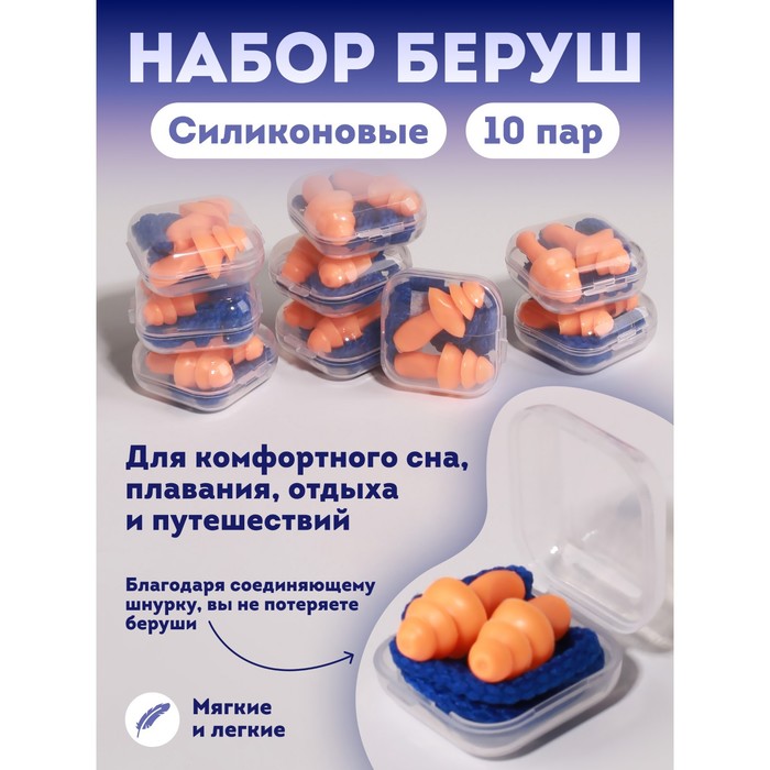 Беруши в пласт футл (силикон) 3*1,7см на шнурке 62,5см набор 10 пар цена за набор накл ОТ