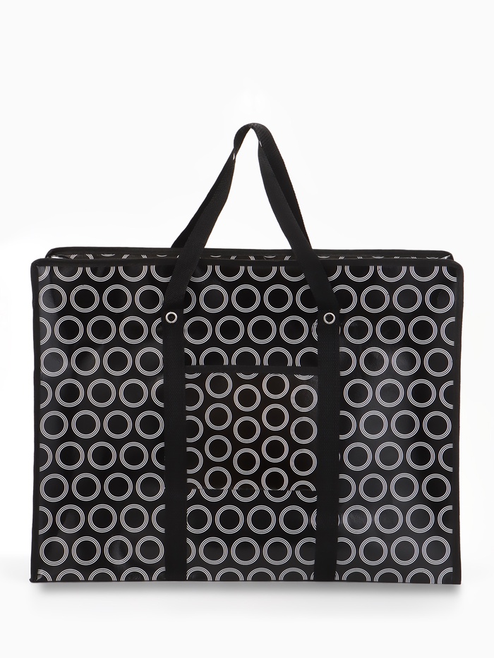 Сумка хозяйственная «Кружочки», на молнии, 60×20×45 см, наружный карман, чёрная