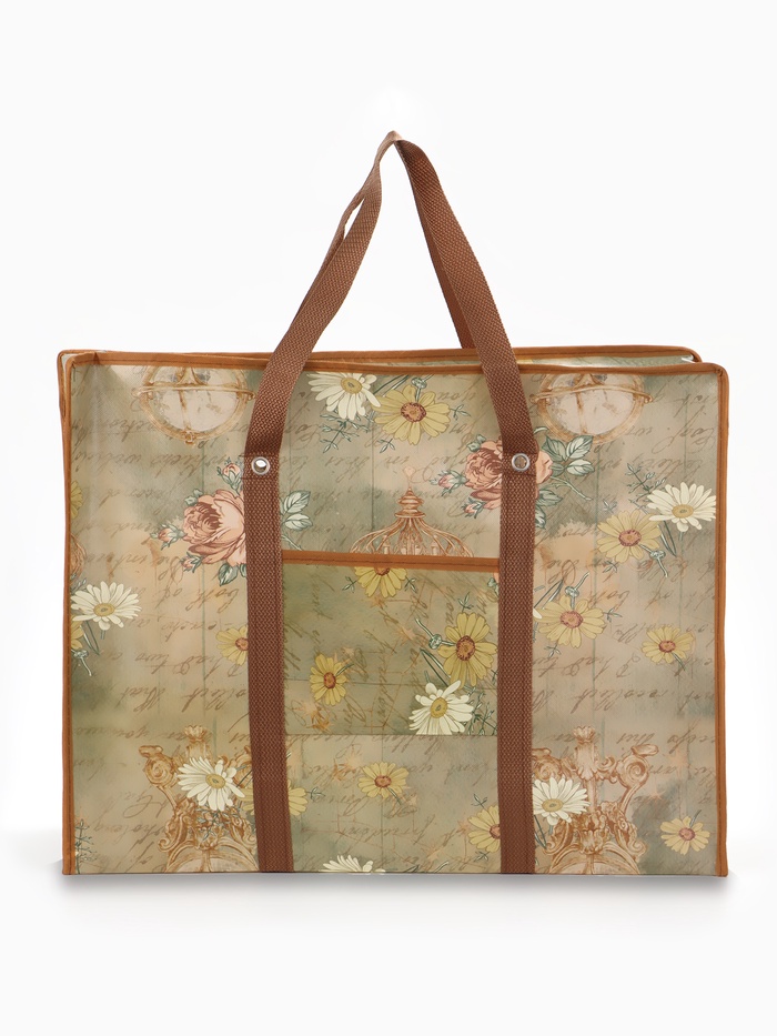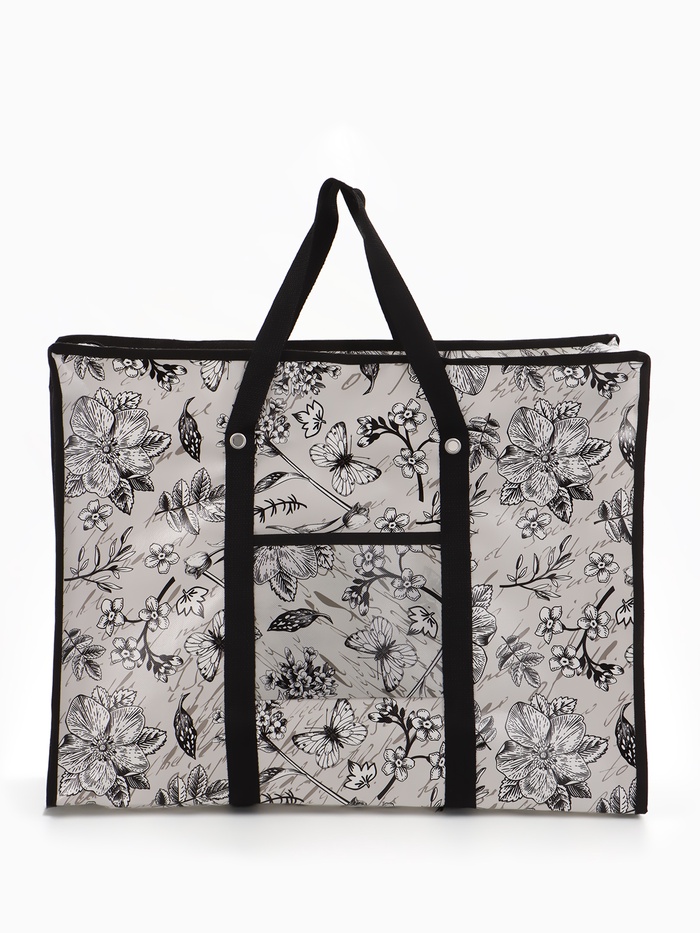 Сумка хозяйственная «Цветы и бабочки», на молнии, 60×20×45 см, наружный карман, серая