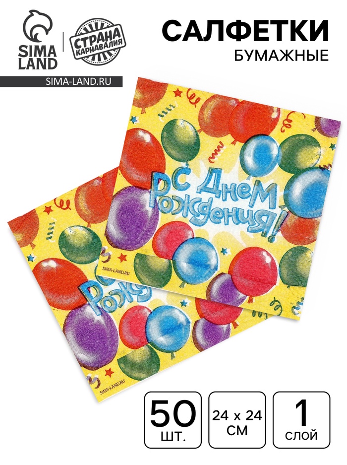 Салфетки бумажные однослойные «С днем рождения», воздушные шары, 24х24 см, 50 шт