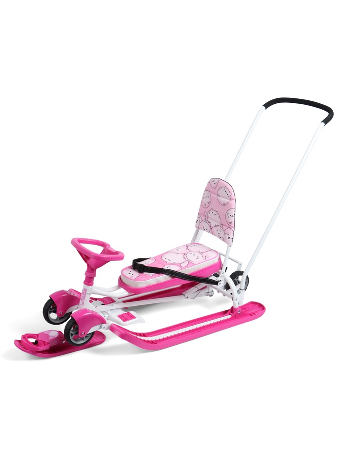 Снегокат «Котики», с родительской ручкой, со спинкой, розовый, ТС6-СЛ/К Snow Cat