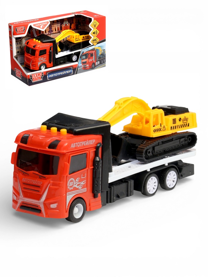 Машина пласт. "Автоперевозчик", 20 см, свет-звук, инерц., подв. дет., экскаватор в компл. 2054256-R