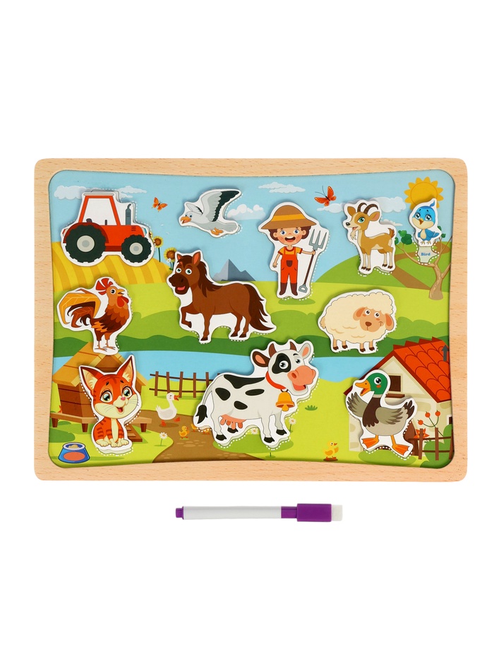 Магнитные макси-пазлы «Синий трактор на ферме», в металлической коробке