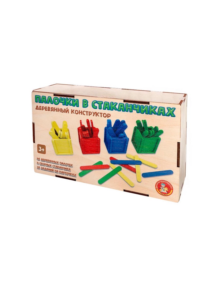 Игра развивающая деревянная "Палочки в стаканчиках" 04565