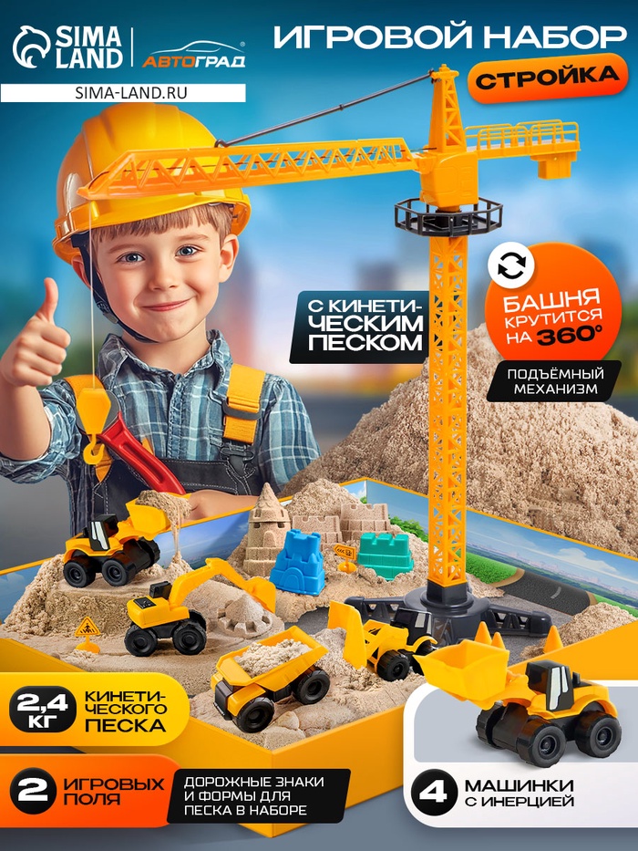 АВТОГРАД Игровой набор "Стройка", стройтехника и кинетический песок