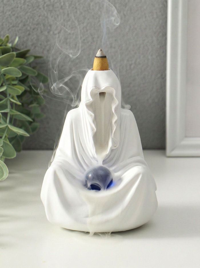 Подставка для благовоний стелющийся дым, световой «Провидец», белый, конусы 10 шт., 9×9.5×14 см