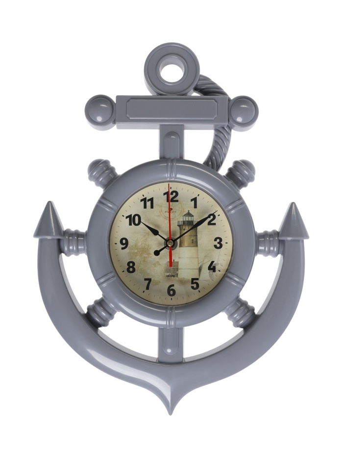 Часы настенные интерьерные «Якорь», бесшумные, плавный ход, 38×27.5 см, d-12 см, серые