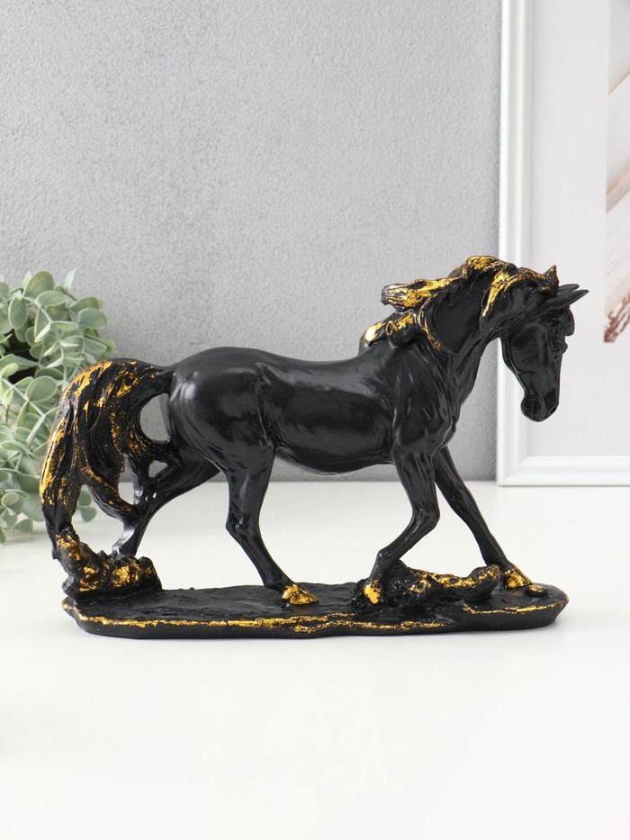 Фигура "Конь у ограды" 29,5х18х8,5 см, чёрный с позолотой