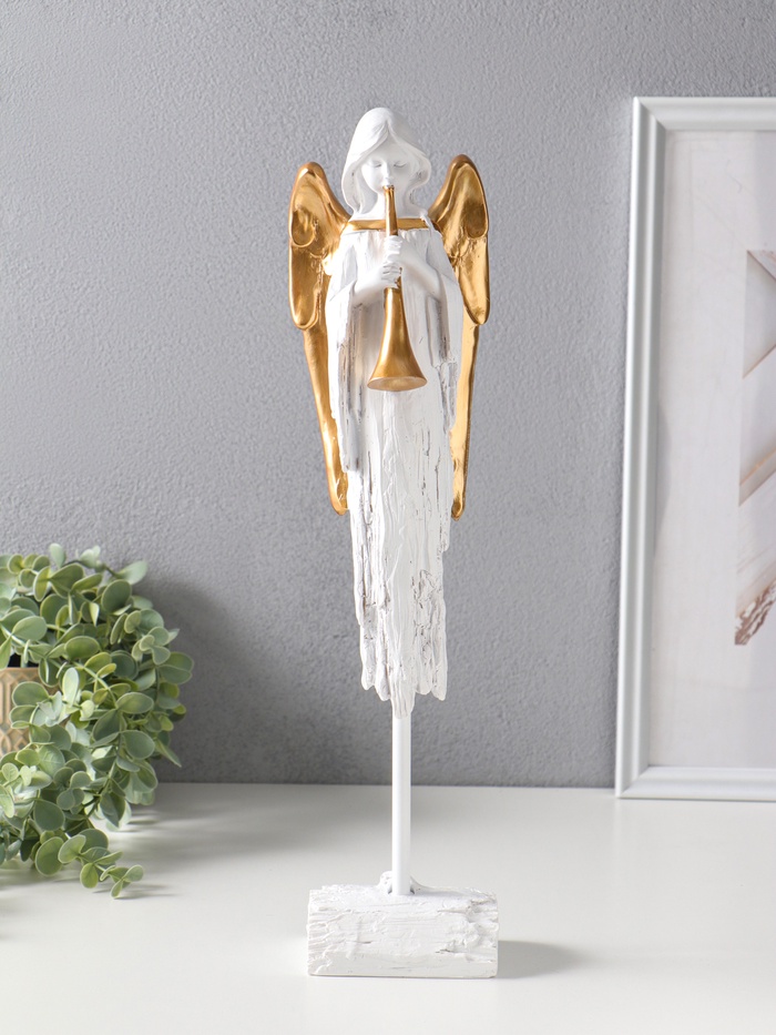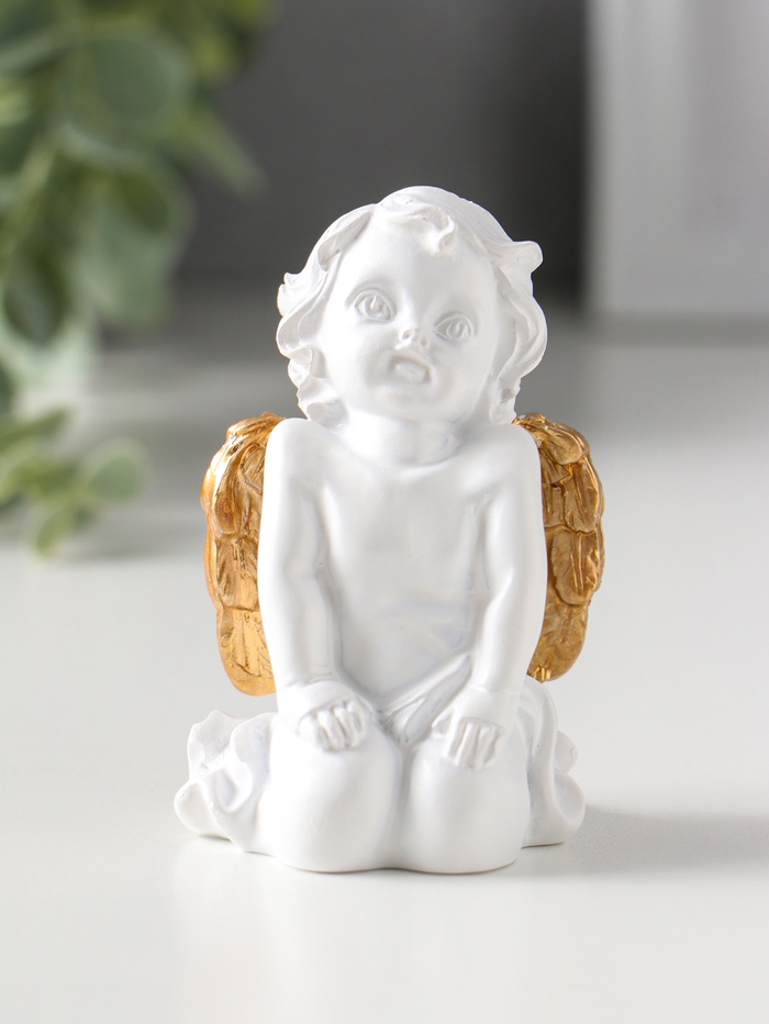 Сувенир полистоун "Белоснежный ангел с золотыми крыльями" 4,5х5х8,5 см