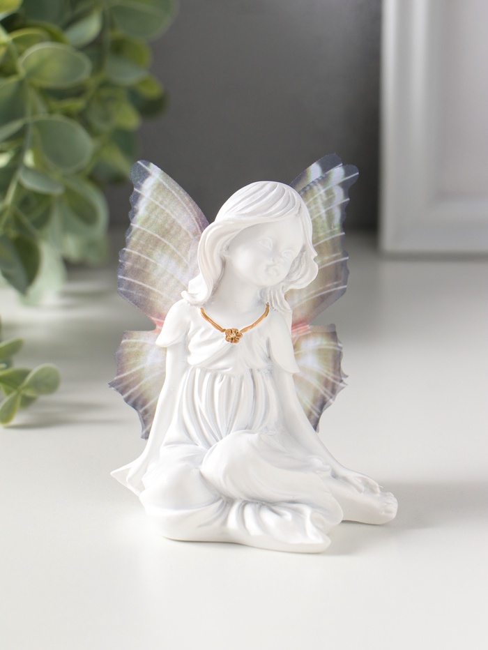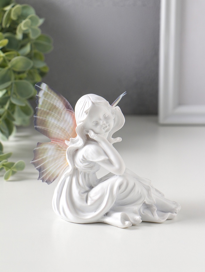 Сувенир полистоун "Девочка-бабочка" белый 6,5х10х9,7 см